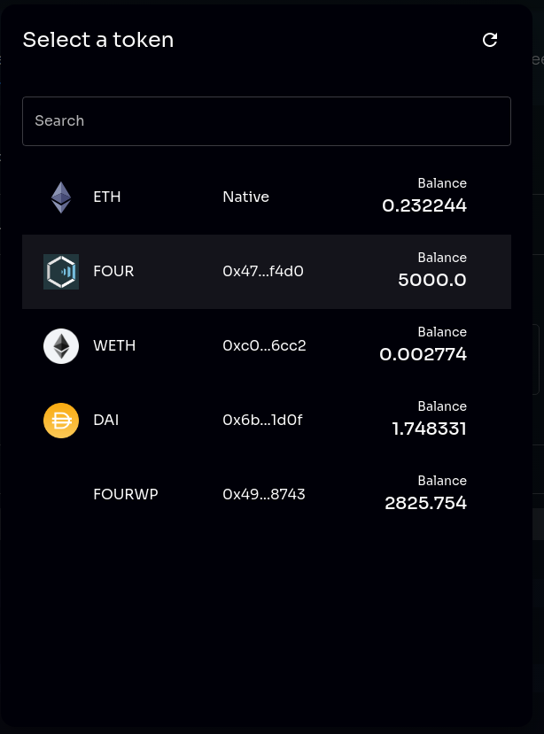 Enter the amount of FOUR tokens you want to transfer
