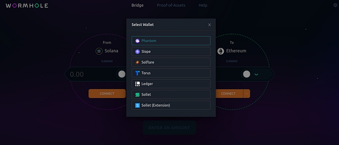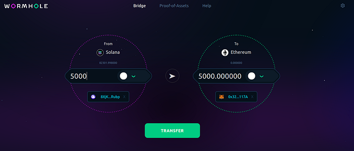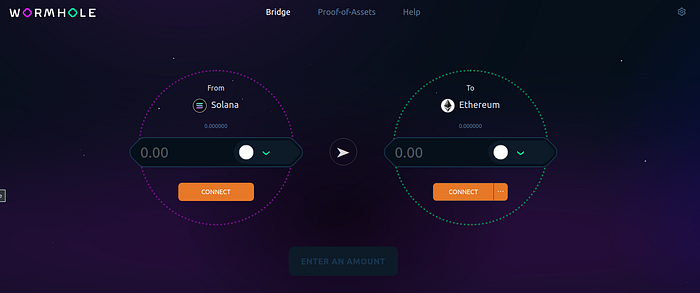 Follow the link to open the Wormhole bridge: https://wormholebridge.com/#/transfer